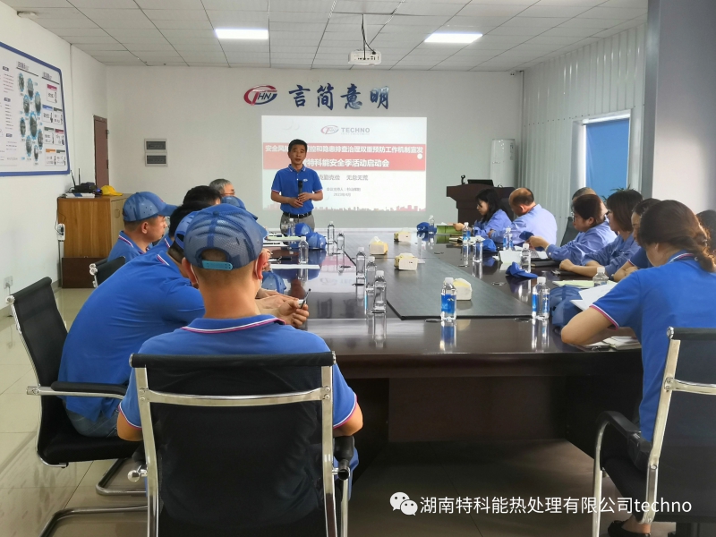 为贯彻落实《国务院安委会办公室关于实施遏制特大事故工作指南构建双重预防机制的意见》、《湖南省安全生产条例》、《天元区工贸企业安全生产风险分级管控体系实施指南》、《企业双重预防体系建设指导手册》构建安全风险分级管控和隐患排查治理双重预防机制,切实提高公司安全管理水平,加强风险分级管控,确保生产安全,特于2023年4月13日下午2点在二工厂会议室召开“安全风险分级管控和隐患排查治理双重预防工作机制宣发暨特科能安全季活动启动会”,会议由特科能安全部负责人主持并宣讲。